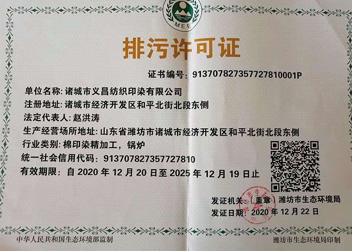 諸城市義昌紡織印染有限公司 通訊地址:山東諸城市開發(fā)區和平北街北段東側